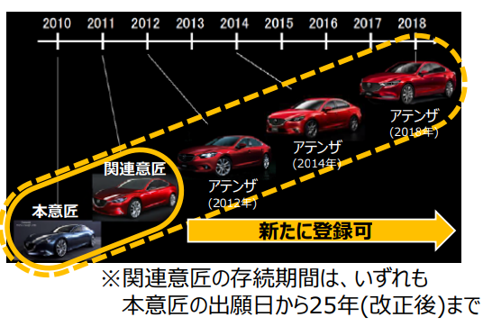 例えば、シリーズ物の商品や、継続してモデルチェンジを行う商品を展開する企業にとっては、デザインが少し異なる商品形態について関連意匠として意匠登録を行い、権利範囲を拡充することが可能になるというメリットがあります。