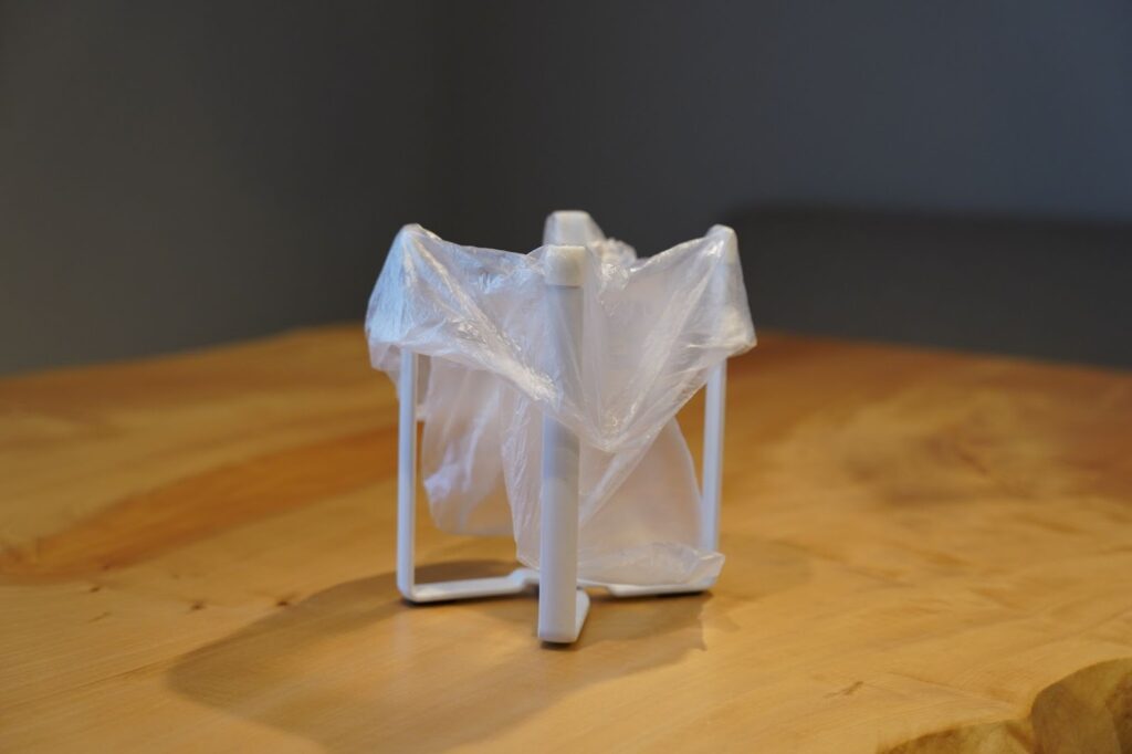 こちらの商品、その名のとおり、小さいポリ袋を被せることで、キッチン上の簡易ごみ箱として使用できるのです。