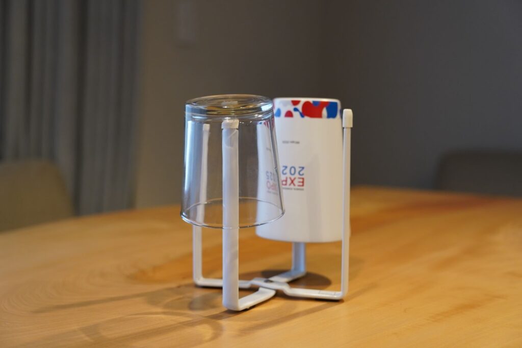 さらに、この4本の足は、洗ったコップの水切りにも使えます。