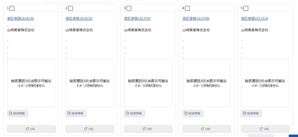 ところで、登録意匠の検索結果では、出願日が比較的新しいものについては、「秘密意匠のため表示可能なイメージがありません。」と表示され、具体的な意匠の内容を見ることができません。