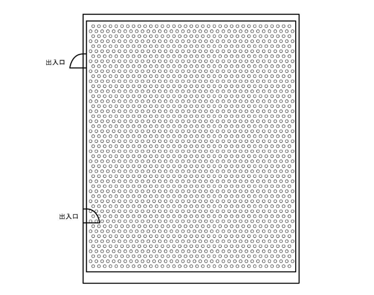 意匠公報に掲載された参考平面図には、空間に規則的に並ぶ無数のランプを示す円が描かれています。