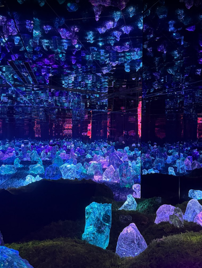 ごつごつとして岩石のような形状、でもそれらがまとう光は美しく、色を変えながら存在します。ここはフォトスポットもあり、写真撮影の列ができていました。