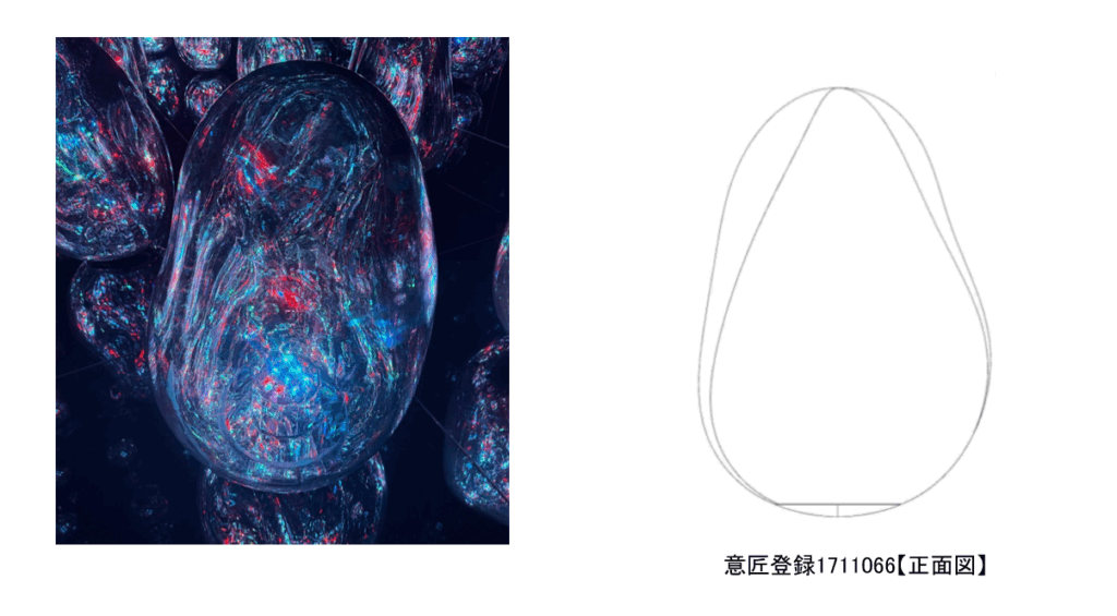 例えば、不思議に泡が空中に浮き続ける『質量も形もない彫刻』は、泡を発生し、維持する仕掛けが特許で守られています。他には、「卵型のオブジェ」のデザインや「遊戯室の内装」などが意匠登録されており、技術とデザインが相まって、唯一無二のチームラボの作品を実現しているのがわかります。
