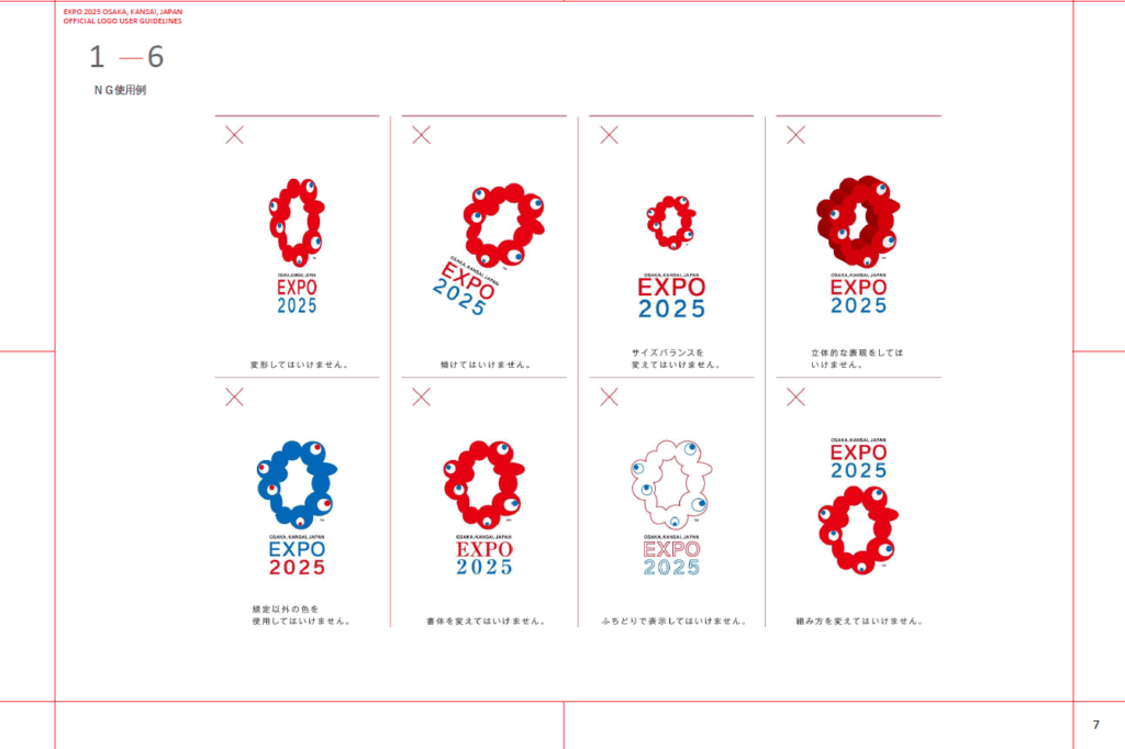 なお、大阪万博のロゴマークのライセンス契約においては、ロゴマークの使い方が「デザインマニュアル」にて厳格に定められていました。